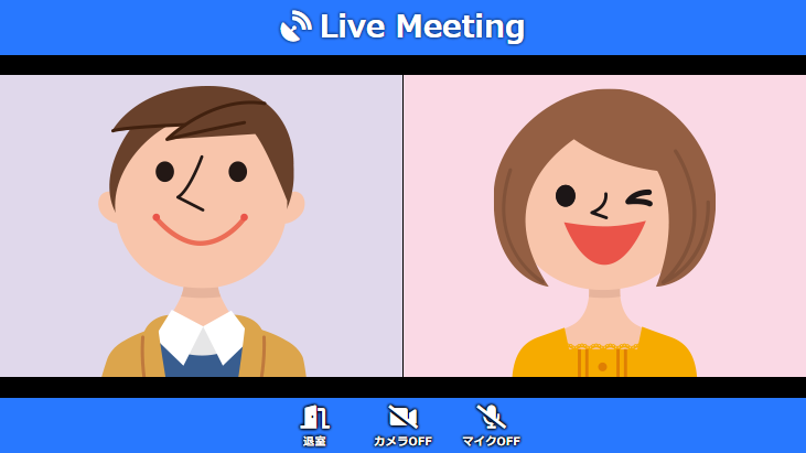 オンラインによる、ライブミーティングに参加して頂くためには、カメラおよびマイク機能付きのスマートフォン、タブレット、パソコン等が必要となります。